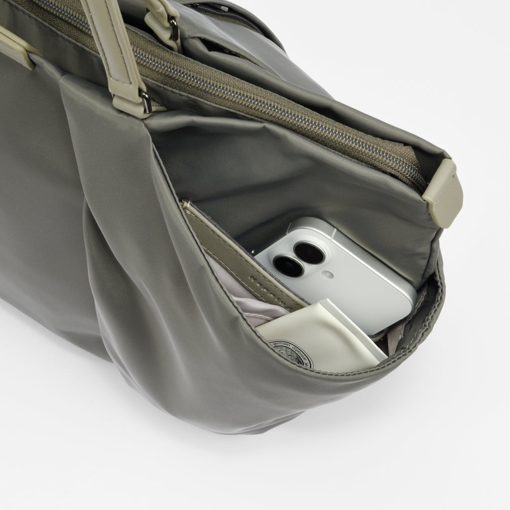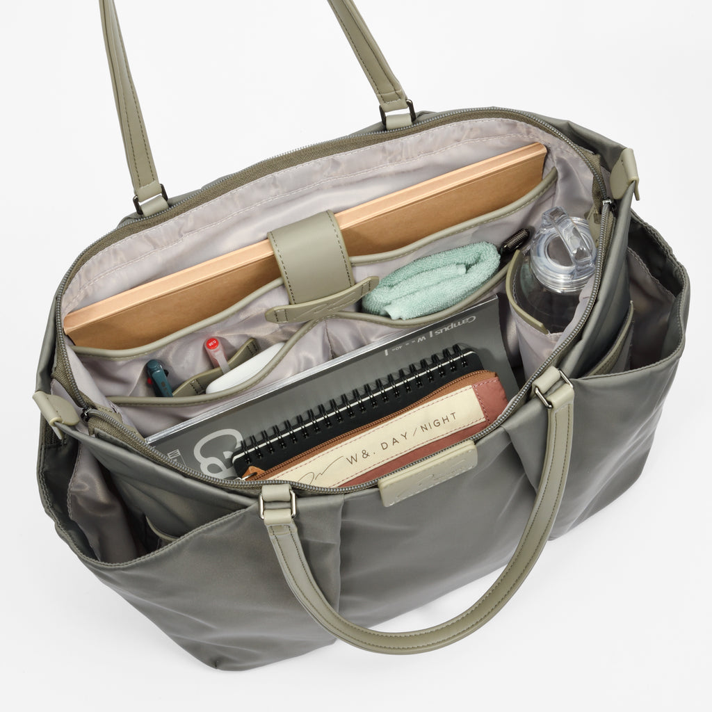 Sukkuトートバッグでは、圧倒的な収納力を誇る「360度ポケット」を搭載。内装の周囲一周に余すことなくポケットがついていて、適当に入れるだけでもバッグの中身が勝手に整理整頓されます。