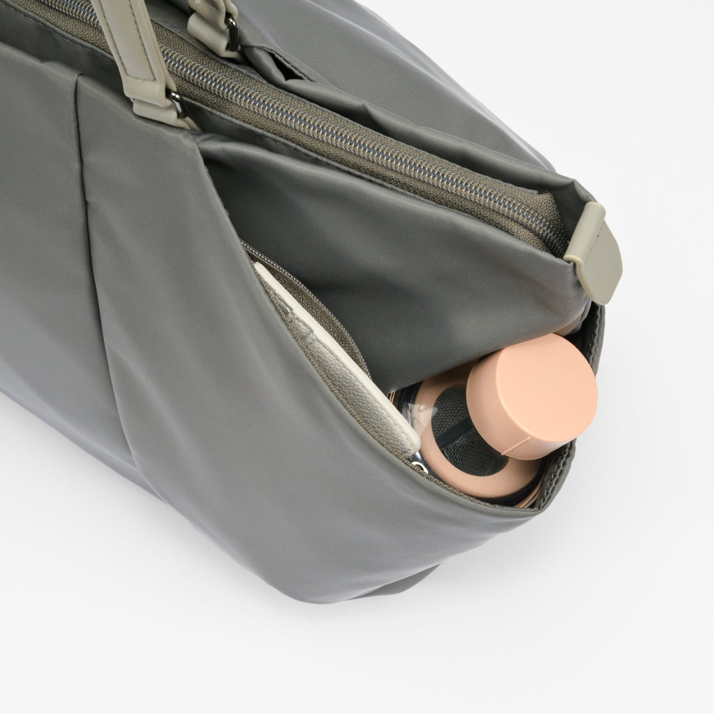 大容量のサイドポケットと、サイドポケット内側に備わったミニポケットで、移動中に使用するアイテムを全部収納できます。