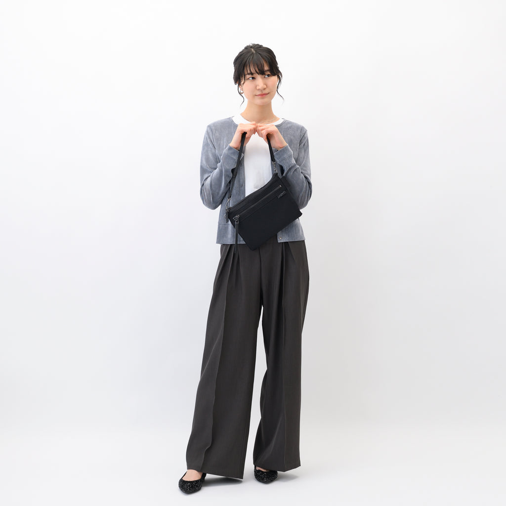 どんなスタイリングにも合わせやすいニュアンスカラーと、ピリッとコーディネートを引き締める定番ブラックの展開です。