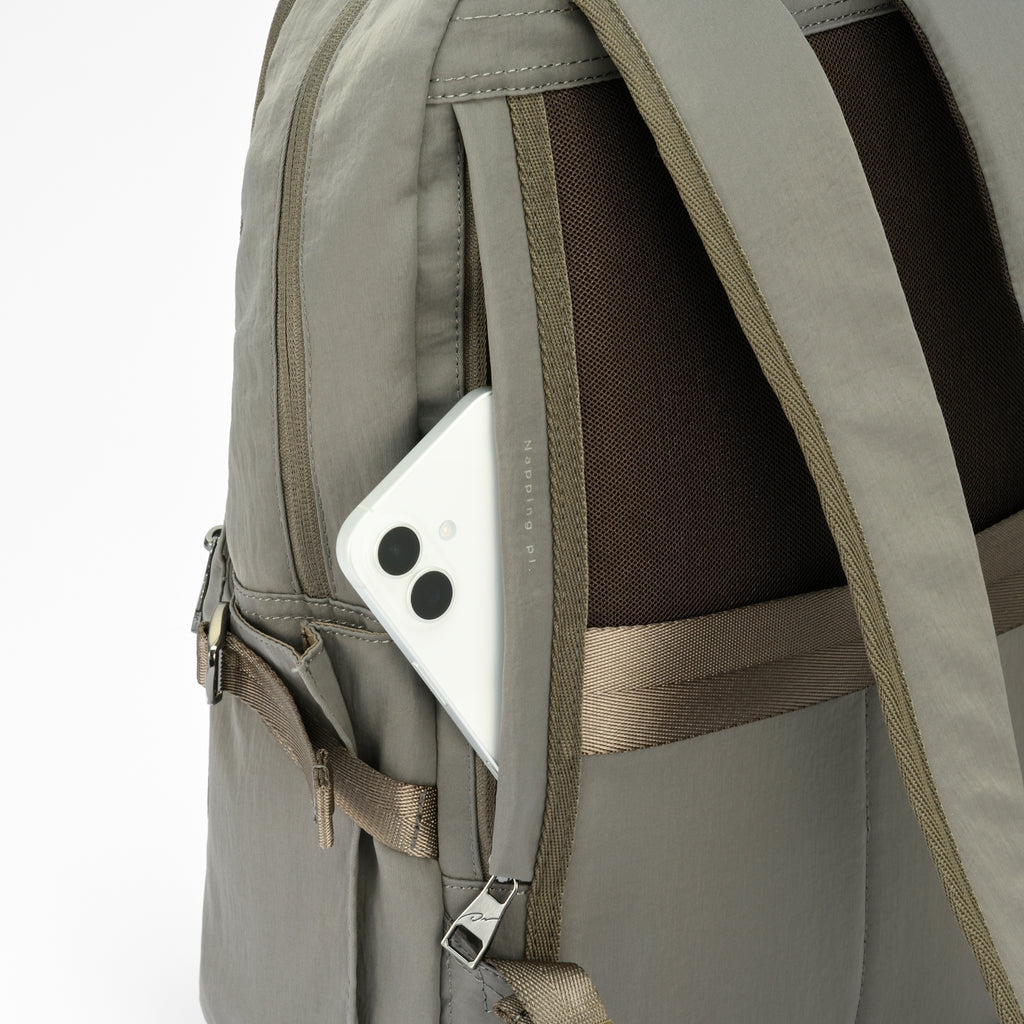 移動中にスマートフォンなどをさっと入れておくことができるポケット。