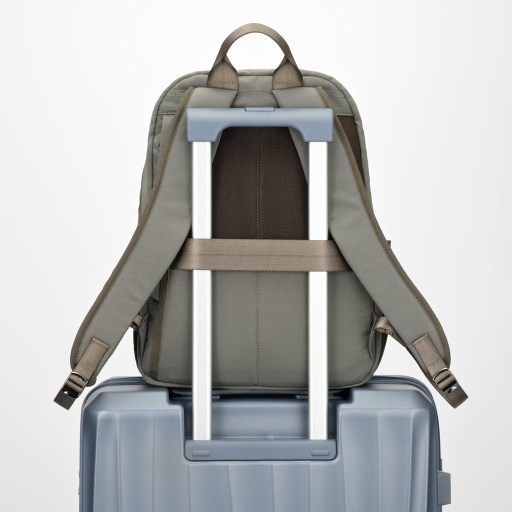 スーツケースなどのハンドルに固定できるセットアップベルトを搭載。
