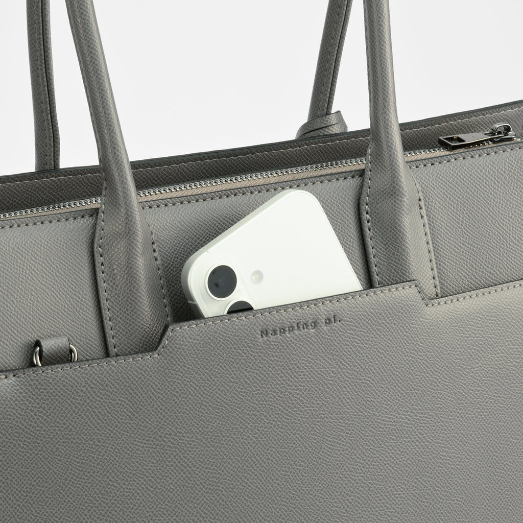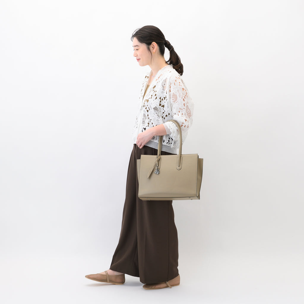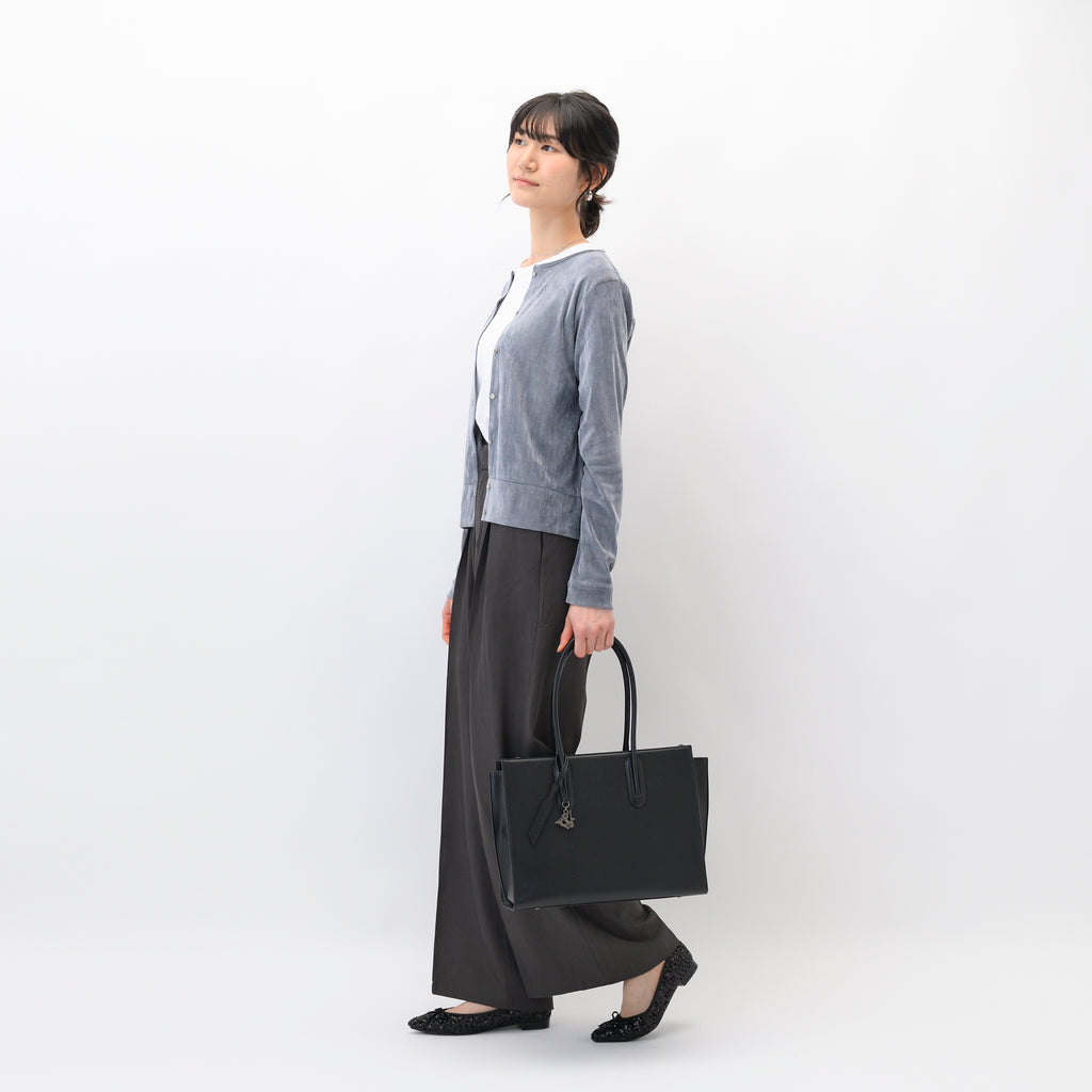 きちんと感と使いやすさを両立させるために、軽くて扱いやすいフォウレザー(合成皮革)を使用しています。
