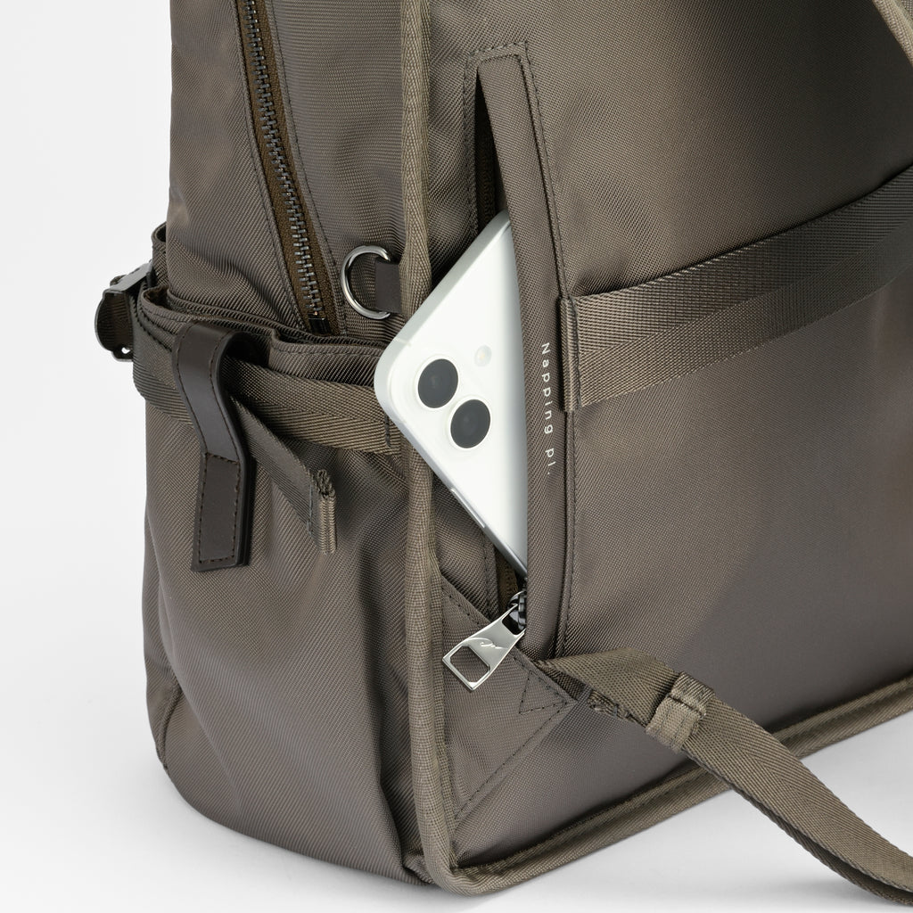 すぐに取り出したいアイテムの収納に便利なポケット。マチ付きになり容量がUP!